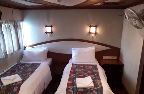 This liveaboard yacht has 10 rooms, with double and twin beds. All have private bathroom. This boat is harbored in Male, and we travel around the islands, one night BBQ is included. as also snorkeling. Ask for the full program when you are interested in booking it. Shuttle service from Velana airport is included. Also all meals and soft drinks.